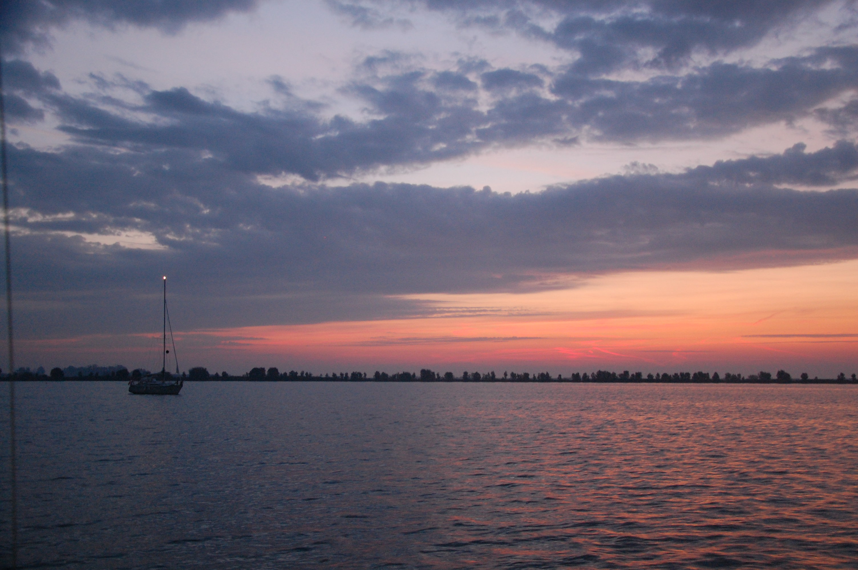 Rond 19:00 dringt eindelijk tot me door dat ik toch door de sluis had moeten gaan, anders verlies ik misschien 6 uur (meer kans op geen/weinig wind)… Maarja, als ik nu het anker ophaal, moet ik de 6 uur weer opnieuw beginnen.. Tja…. even googlen… vaarinformatie / RWS, nummer van de planning…