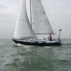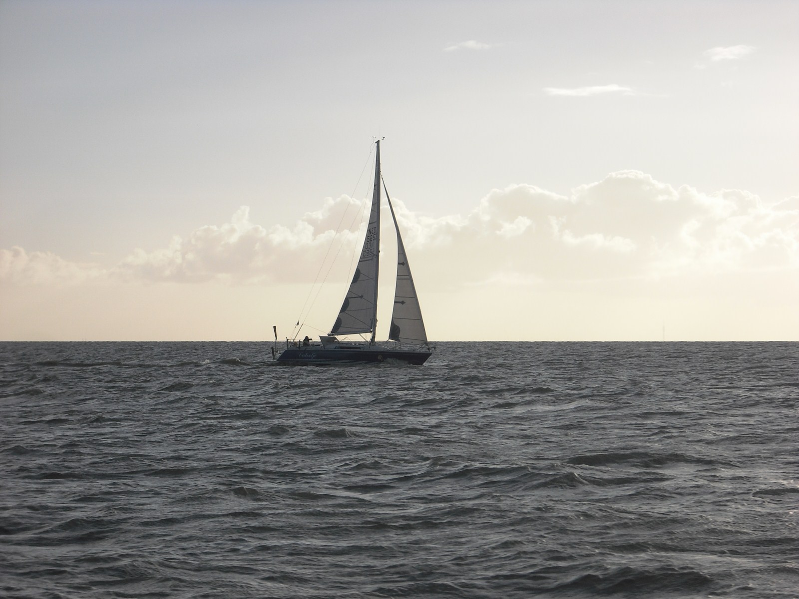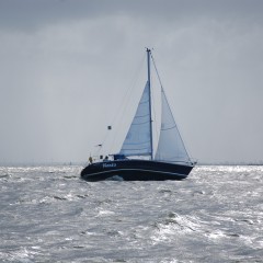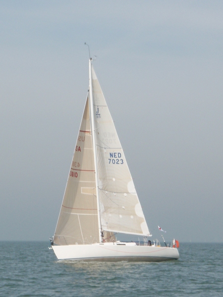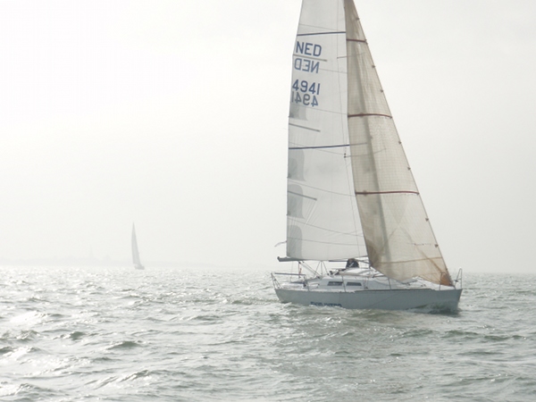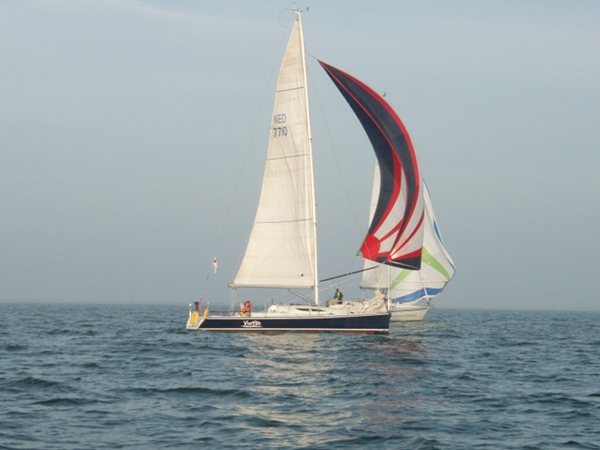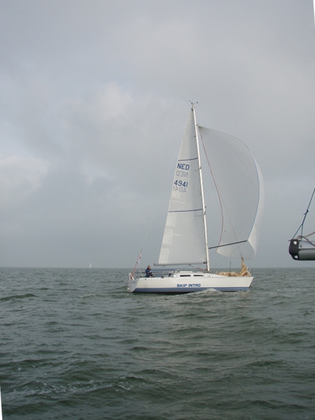 Rond 06:45, neem ik afscheid van de steiger en ga buiten de haven de zeiltjes hijsen, vol grootzeil en HA fok…. Om 07:08 de startlijn over, volgens de routering moeten we 6 uur laten weer terug zijn..