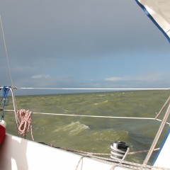 Nog even over de wind… Het lijkt wel hoe groter de boot, hoe meer wind.. Misschien zijn de afleesklokken groter ☺ De paar meter extra mast ?!? Ik heb veel snelheden / windkrachten voorbij zien komen (toen ik ook op het noordelijk IJsselmeer zat), maar niet boven een goede 5 uit zien komen!