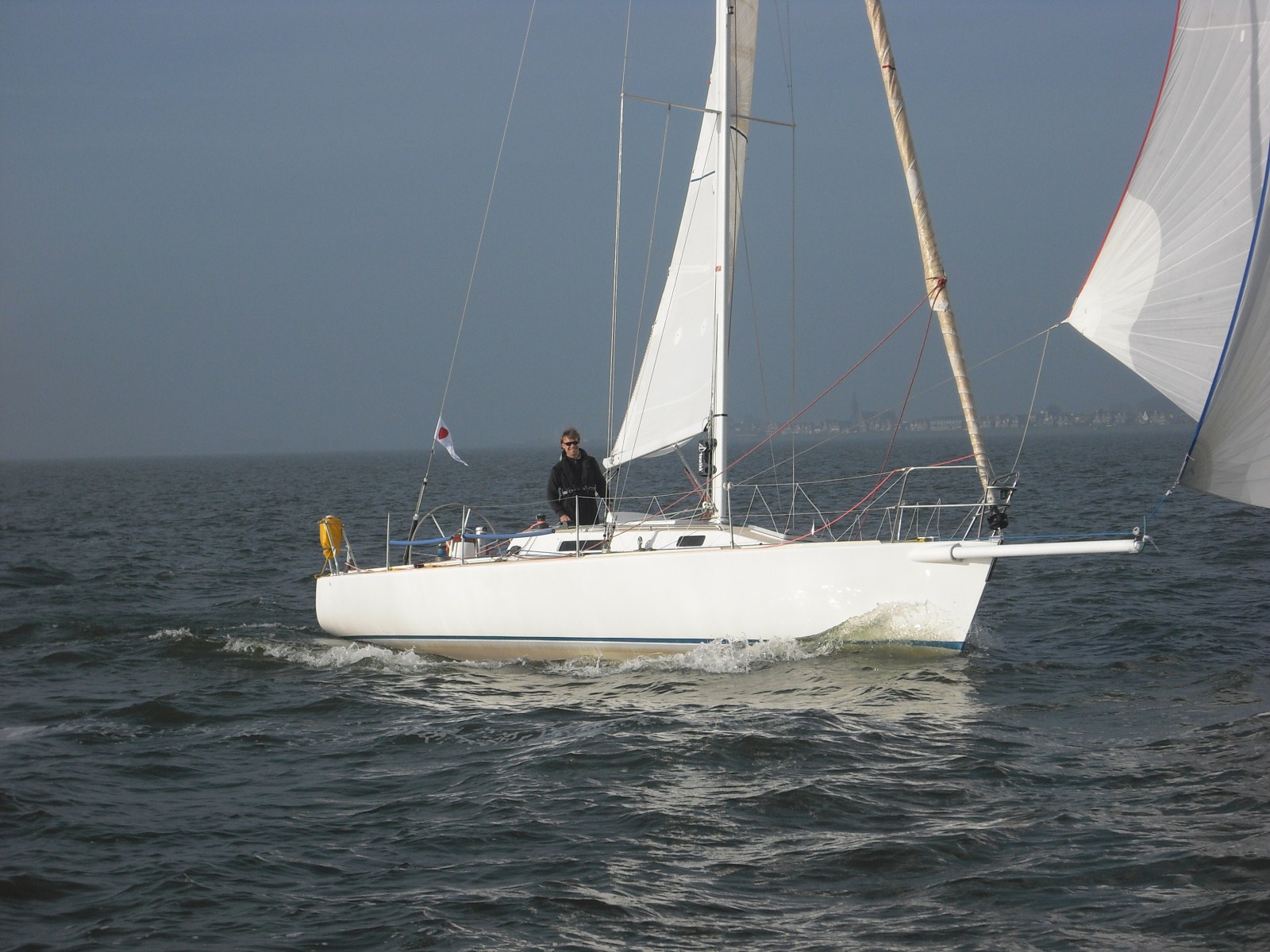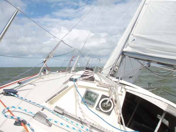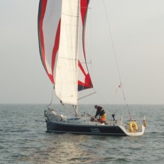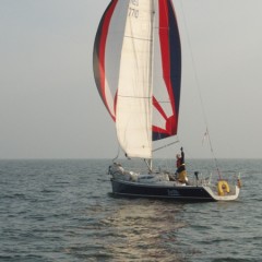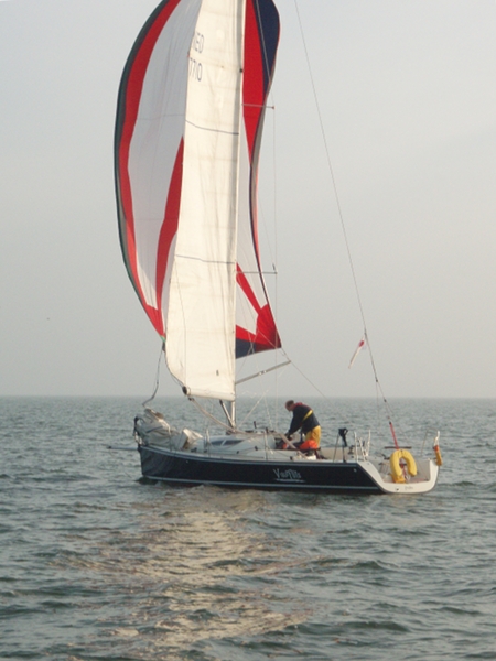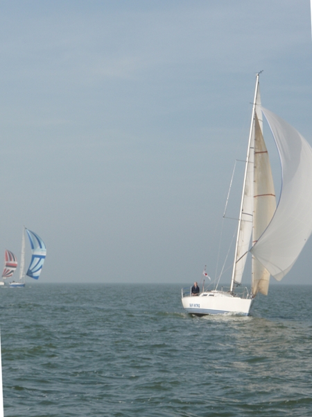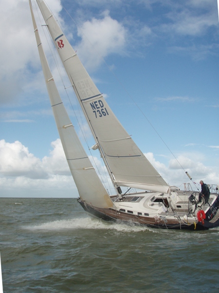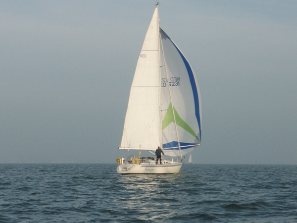 Halverwege het rak valt de wind in……bedankt Batfish! Ik zet de boegspriet, laat de fok zakken en zet mijn lichtweer Code-G… en maken weer snelheid.. Na de MN1GZ2, met een kink in de schoot richting Lelystad.. met grootzeil aan BB en de lichtweer uitgeboomd aan SB.. halen rompsnelheid.. geen zin om af te kruisen met gennaker…