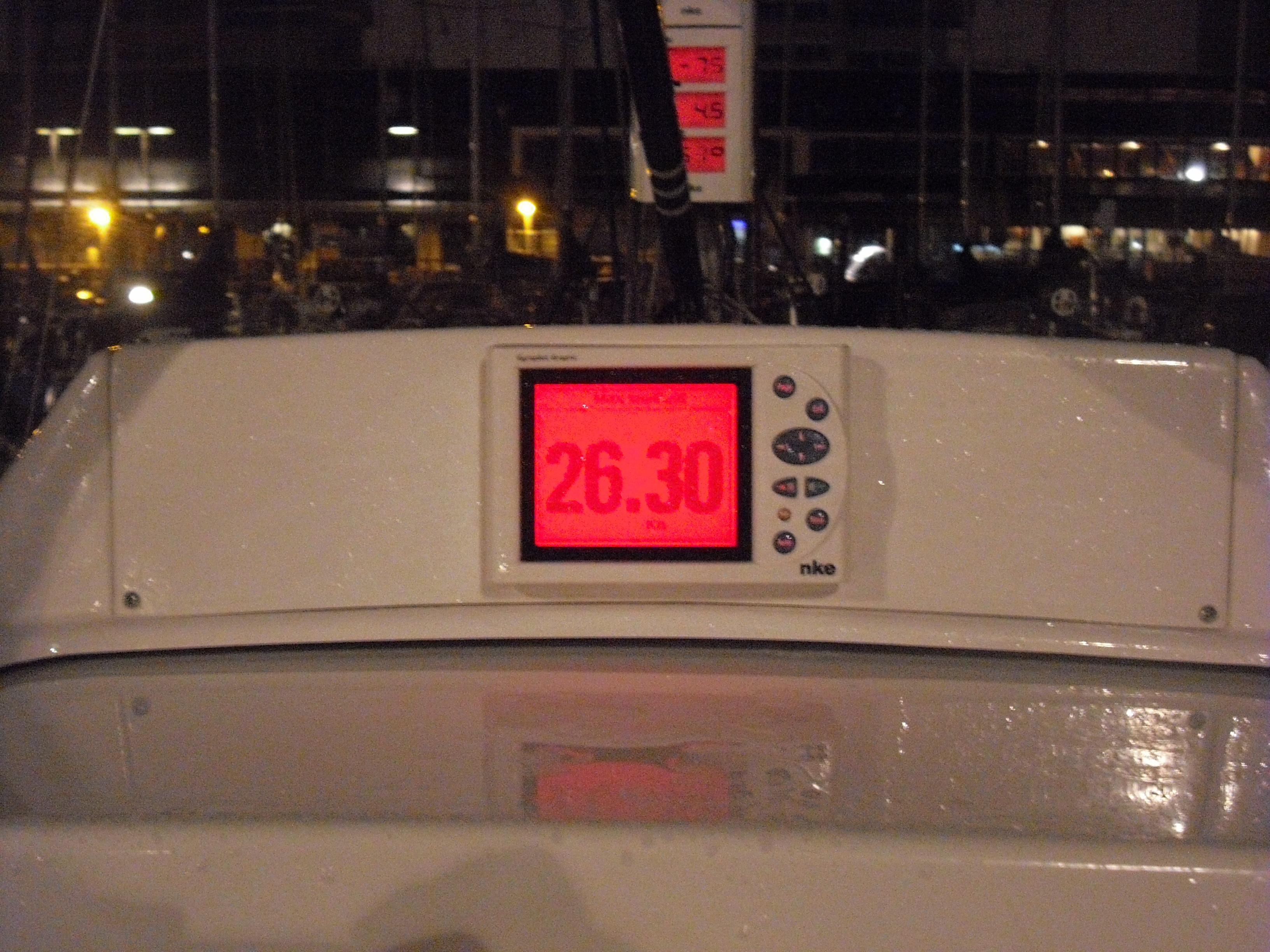 Langzaam komen er meer deelnemers binnen en hier en daar een praatje maken.. Ik heb nog wel een probleem met mijn automaat, is het nieuwste model, maar is soms helemaal de weg kwijt.. Ik vermoed dat de sensor (heeft geen flux kompas meer) te dicht bij elektrische kabels ligt of de plotter.. Bij Flevo Marina 5 meter NMEA2000 spur kabel gekocht, maar krijg met geen mogelijkheid de schroeven in het polyester. Bij Black Magic Woman een elektrische boormachine geleend en de sensor voor in het schip geplaatst.