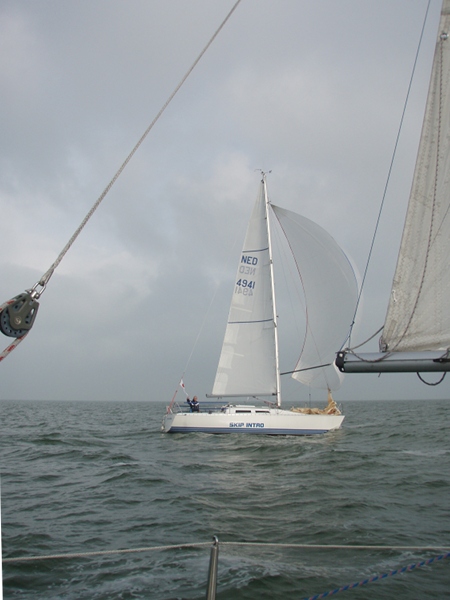 Onderweg naar het KH, weer de lichtweer uitgeboomd.. De KH om 16:00 gerond..lekker snel rak.. op naar de EZ3, niet bezeild.. HA fok staat weer voor meer hoogte, wind ook iets toegenomen.. Net als twee jaar geleden, de EZ boeien zijn niet mijn vrienden en passen in het rijtje Sport A / B… maar we stuiteren de goeie richting op… Ik zie Sundance met een klappend voorzeil en vaar er langs, alles onder controle, alleen is de rolfok naar beneden gekomen….