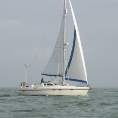 Batfish loopt over de steiger en geeft aan dat het behoorlijk gaat waaien en alleen een Genua 4 gebruikt… Lichtweer zeil is niet nodig… Uhhhm, veel ervaring, maar mijn grib zeggen toch iets anders… toch het zekere voor het onzekere, ik haal de boegspriet en lichtweer zeil weg…