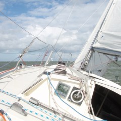 Om 05:30 gaat de wekker, goed geslapen… Eerste even voor de laatste keer goed naar het toilet en zie op ander boten langzaam activiteiten… Ik heb een vol grootzeil, HA fok en op de boegspriet een soort combinatie tussen een Code 0 en een gennaker (Code-G)